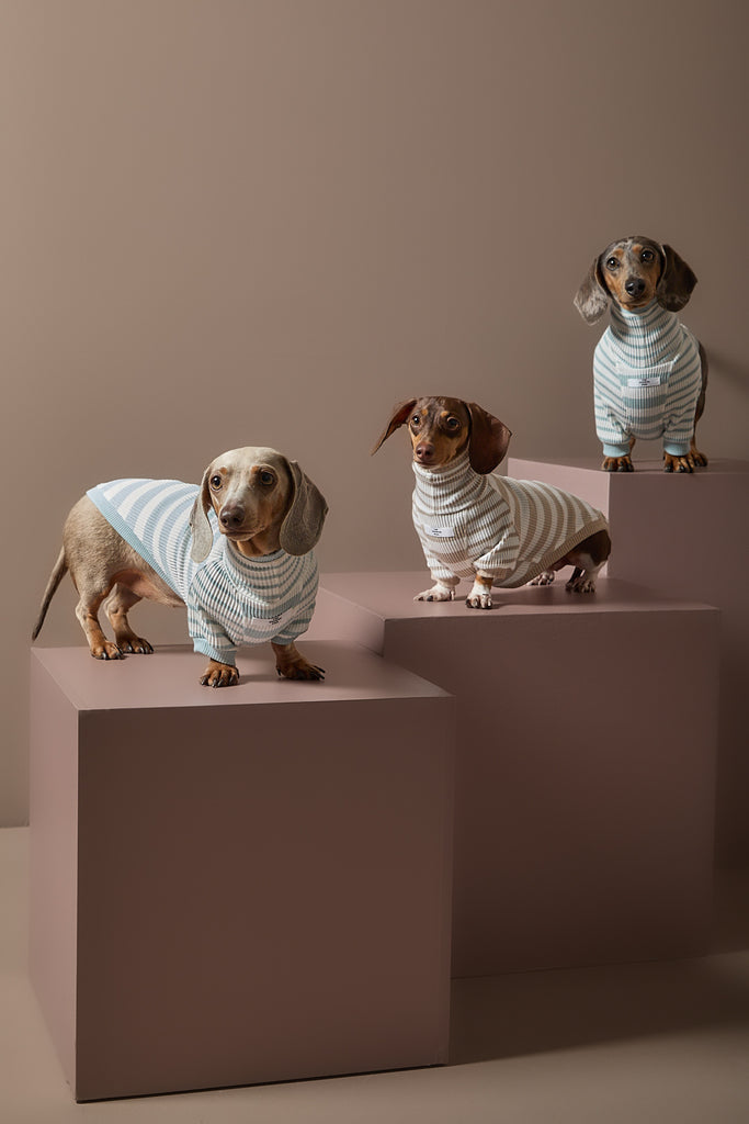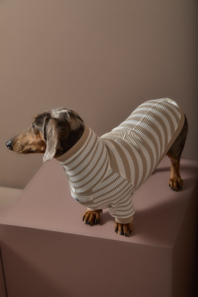 Dachshund Sand and Cream Striped Turtleneck Sweater REED