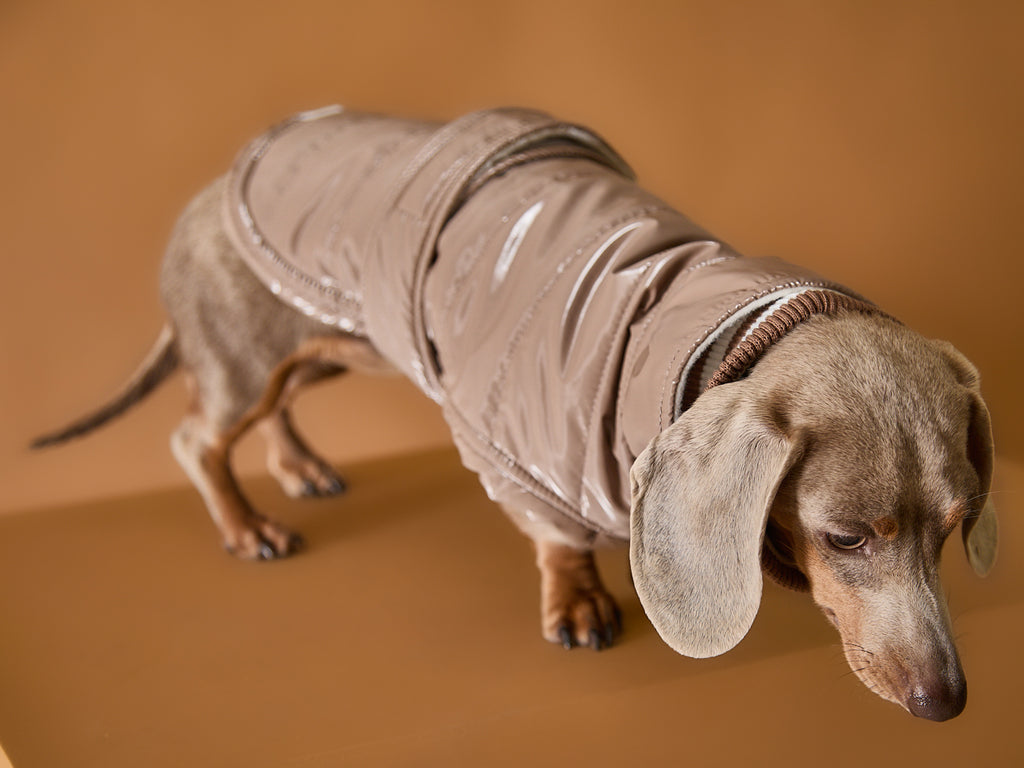 Dachshund Taupe Waterproof Turtleneck Jacket RUE