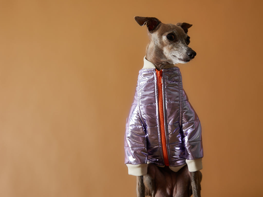 Italian Greyhound / Whippet Metallic Lilac Bomber Jacket with Zipper OPERA