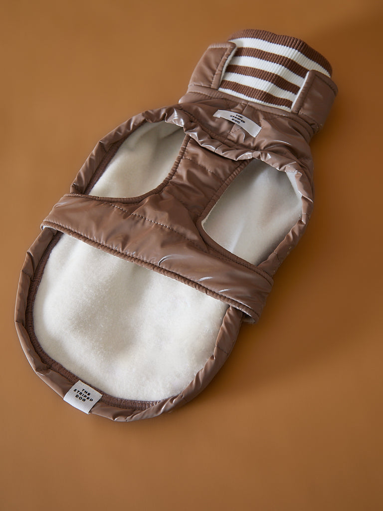 The fleece on the inside keeps your dog warm and comfortable and the knit turtleneck makes the outfit super chic.