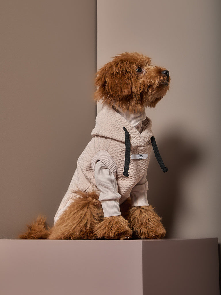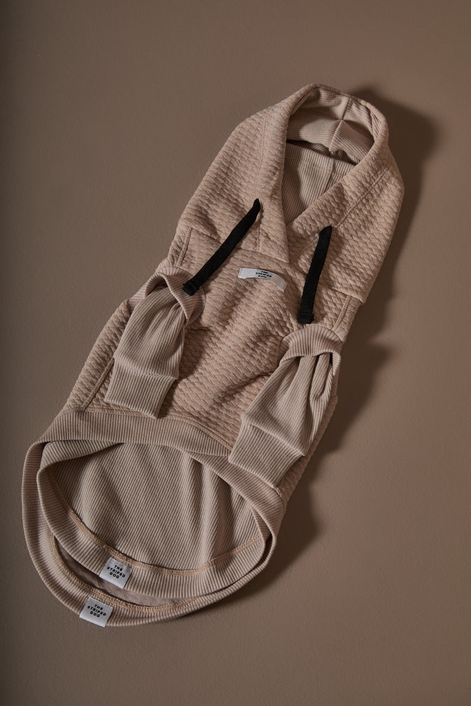 Sand hooded vest. Textured, lightweight, and stylish - perfect for walks and everyday wear.