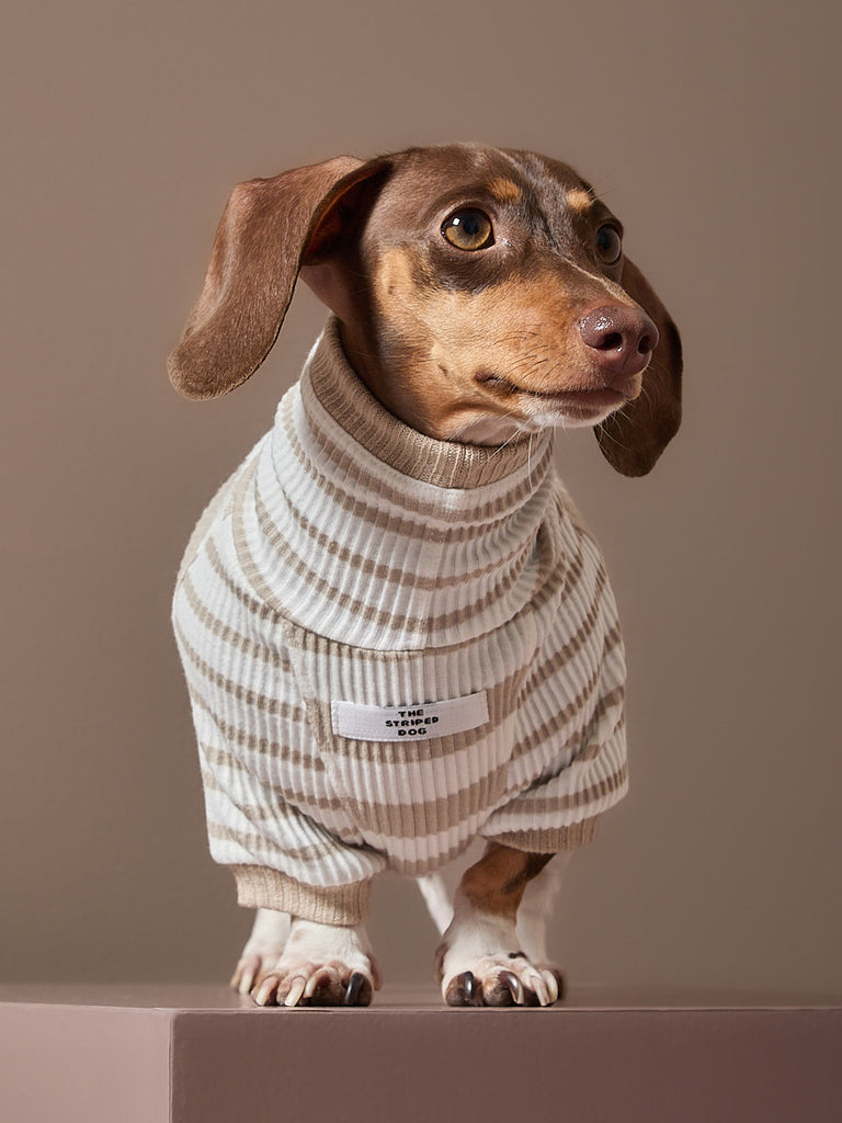 Dachshund Sand and Cream Striped Turtleneck Sweater REED