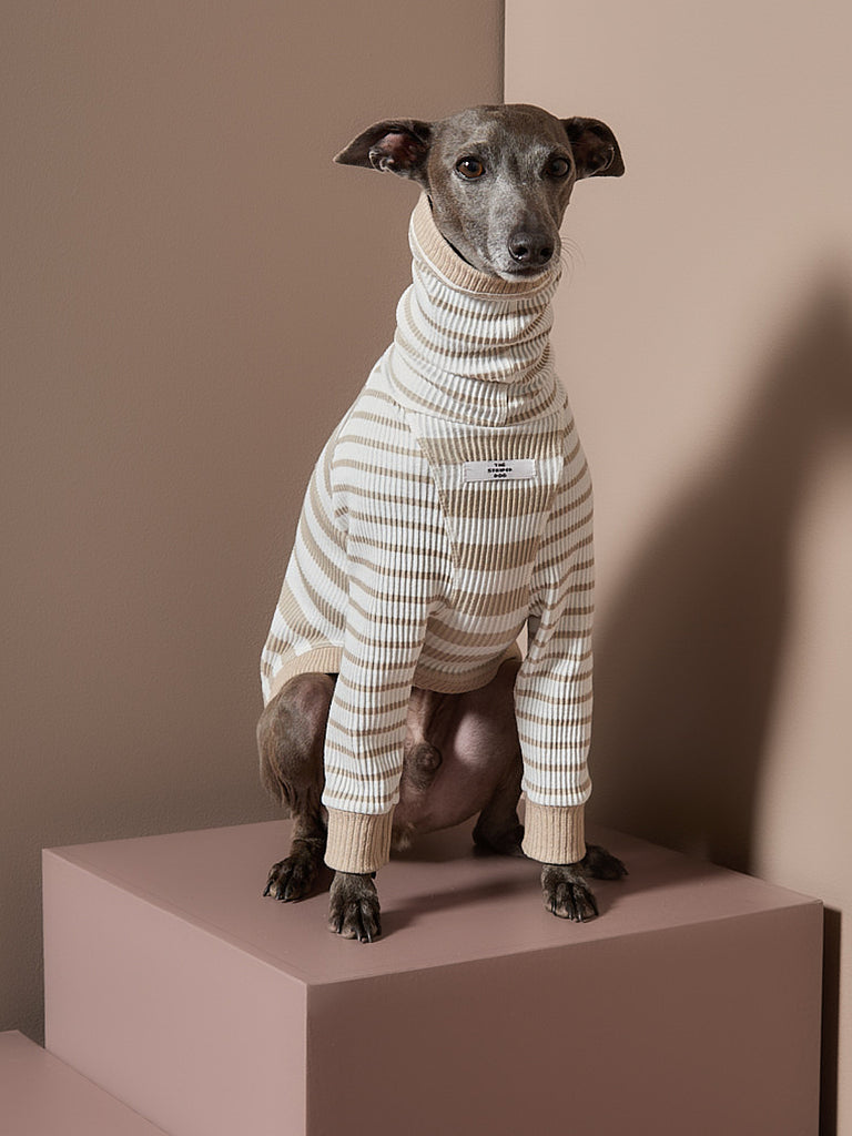 Italian Greyhound / Whippet Sand and Cream Striped Turtleneck Sweater REED