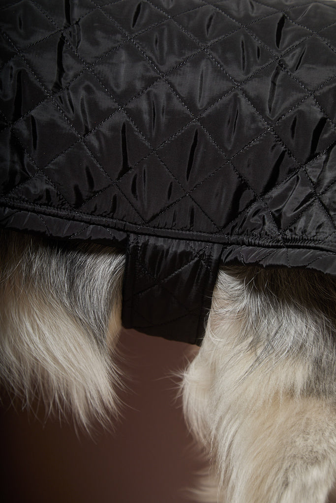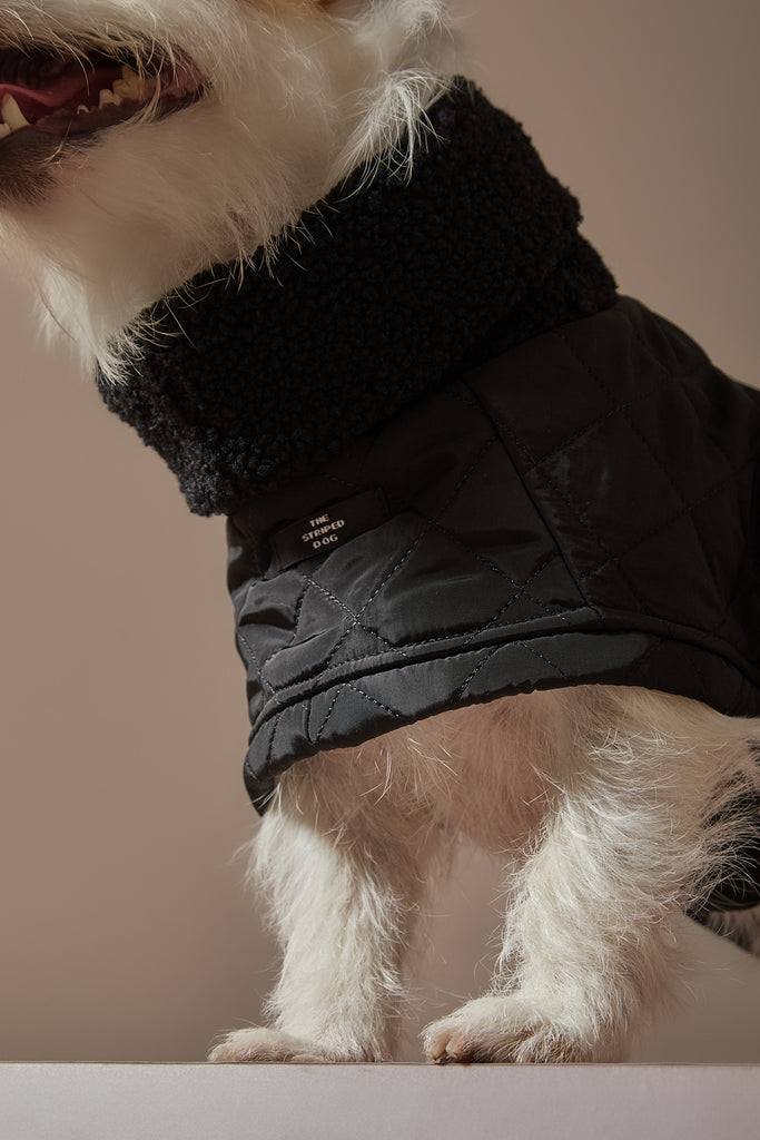 Black quilted and textured cape. Features a soft sherpa-style neck and a lightweight quilted body. Comfortable, easy to put on, and designed for chilly and rainy days.