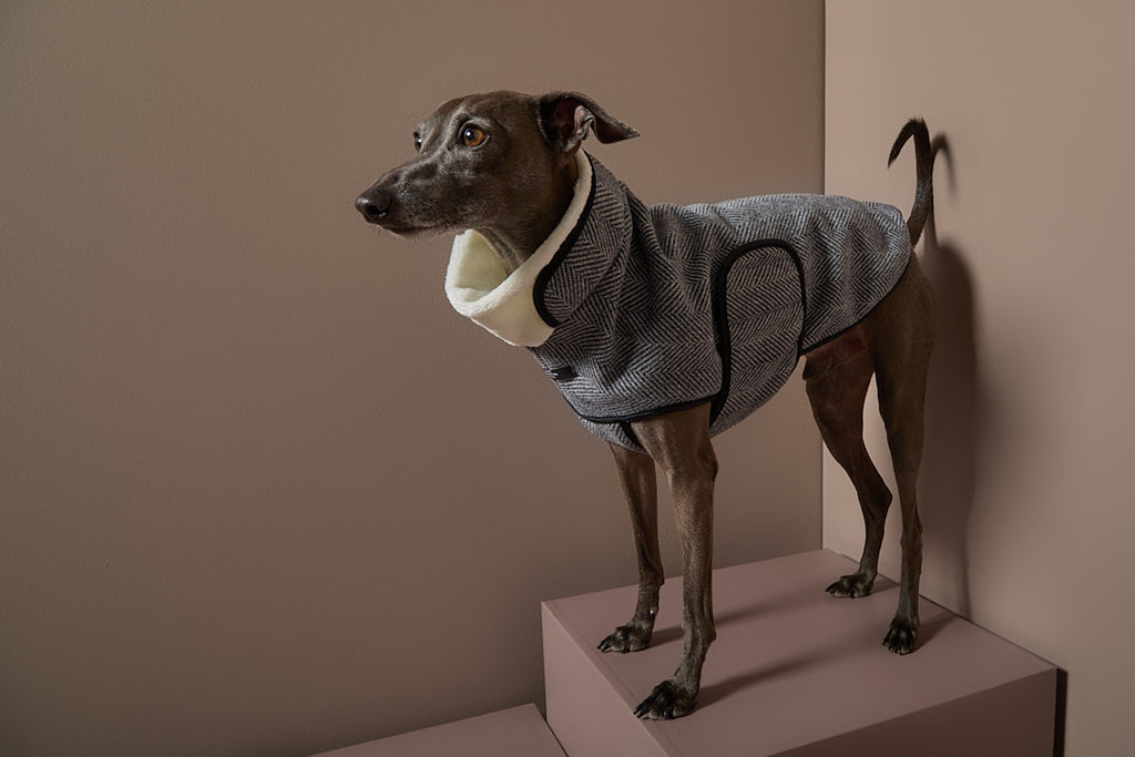 Italian Greyhound / Whippet Gray Herringbone Jacket TWILL