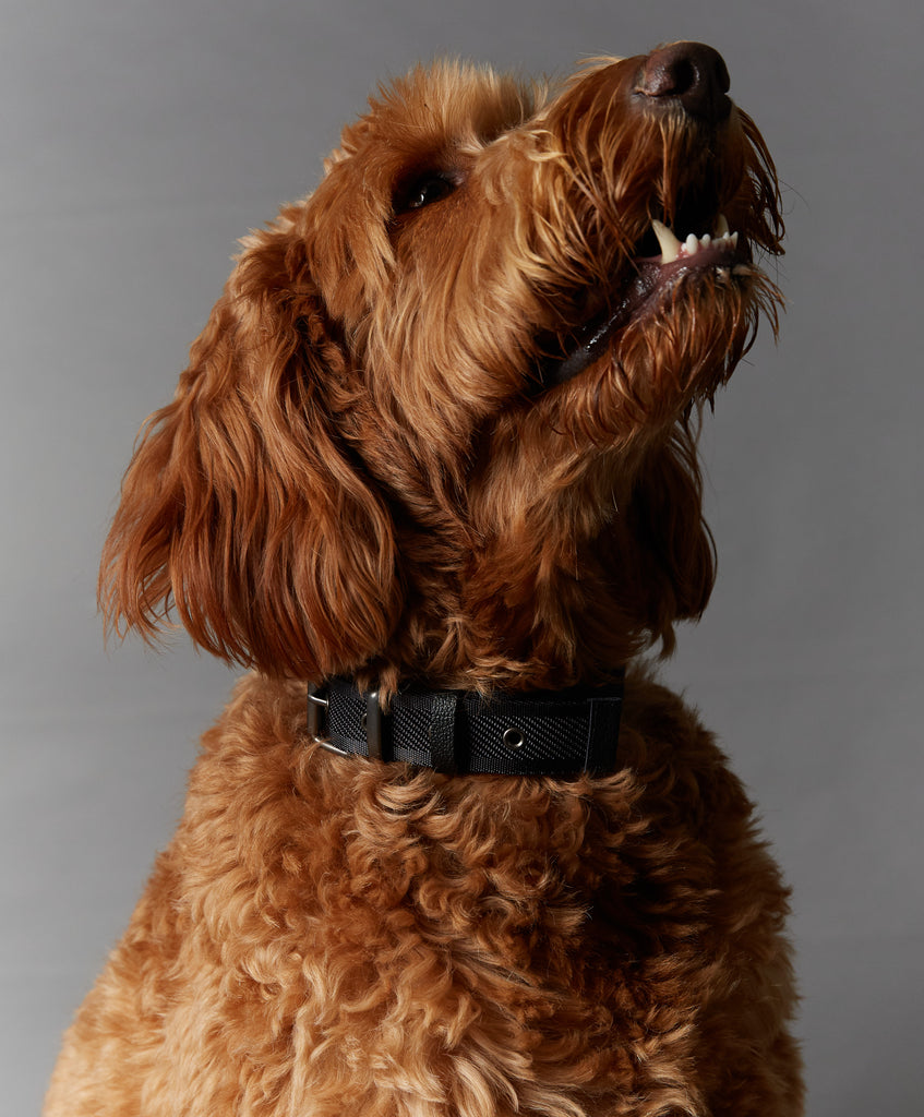 Nylon collar, made in black for a unisex purpose. Provides support and durability.